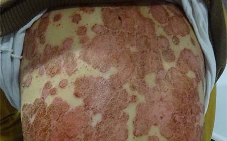寻常型牛皮癣滥用激素类药物治疗是引发脓疱型牛皮癣的主要原因。牛皮癣患者患病之后都会治病心切,误信庸医之言,使用激素或免疫抑制剂来治病。治疗效果在刚开始的时候确实是可喜的,可是一旦停止使用该类药物,病情会立刻复发甚至比原来还要严重,因此症状较轻的寻常型牛皮癣就可能转变为脓疱型牛皮癣。