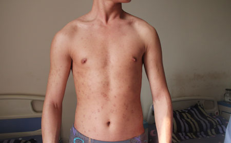 医生分析:银屑病一种常见的皮肤病,此病的大特点就是容易复发,病程过长,而且此病会给患者们带来极大的身体损害与心理伤害,它会在皮肤上出现大大小小的红色斑点或斑片,上面覆盖多层银白色的鳞屑,它可发生在身体的任何一个部位,也可发生在任何人的皮肤上,银屑病没有年龄段,也没有性别分别。